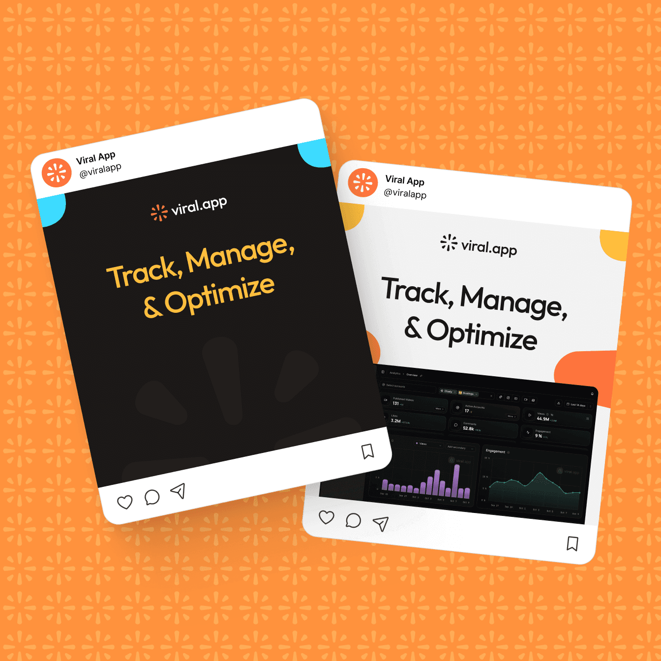 Viral.app helps marketers manage and scale creator campaigns by giving them a clean, unified workflow that simplifies discovery, tracking, and performance.We crafted their brand identity and website design with a playful-yet-approachable tone using visuals that highlight clarity, credibility, and conversion.